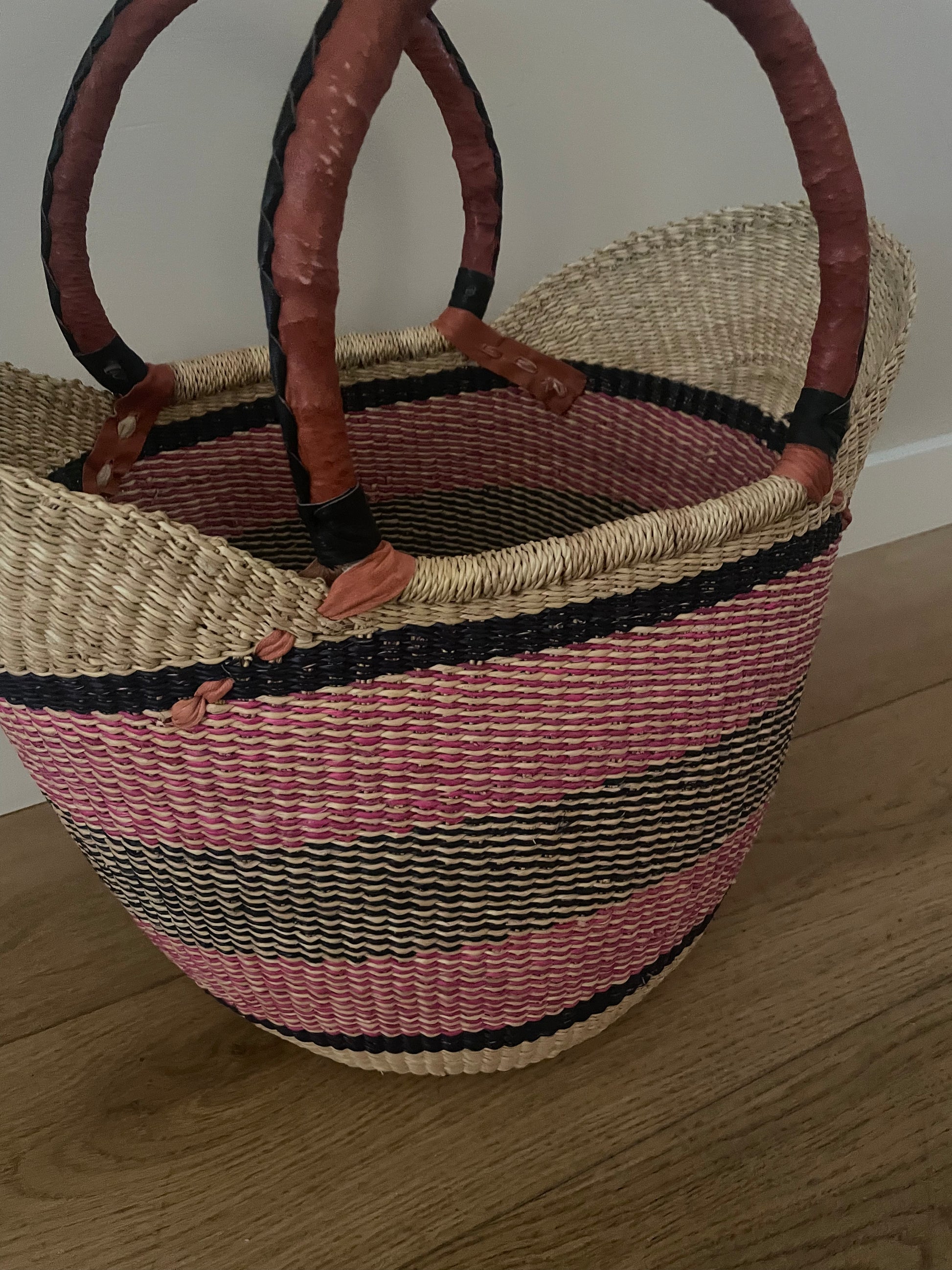 Deze mand is een traditioneel en handgemaakt product uit Bolgatanga in Ghana en wordt onder goede omstandigheden gemaakt. Wij onderhandelen niet over de prijs, zo krijgen de 'weavers' een eerlijke prijs voor hun prachtige producten.