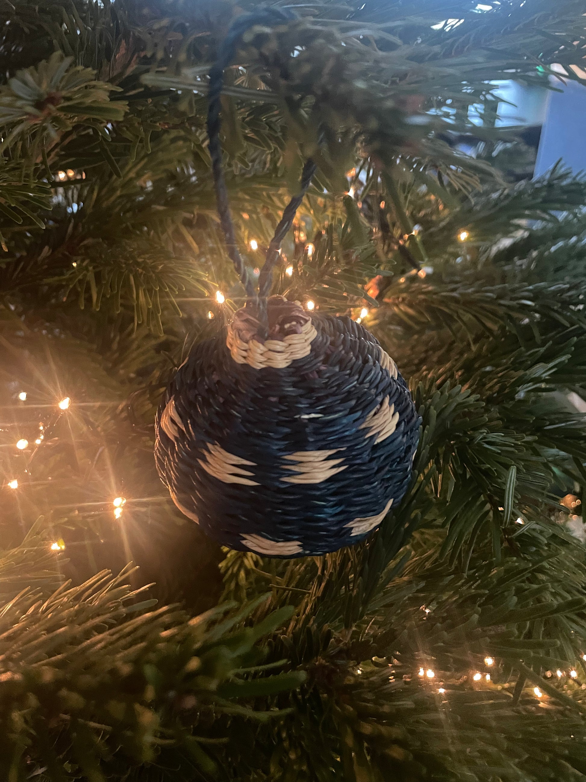 De kerstballen zijn een traditioneel en handgemaakt product uit Bolgatanga in Ghana en worden onder goede omstandigheden gemaakt. Er wordt door ons niet onderhandelt over de prijs, zo krijgen de 'weavers' een eerlijke prijs voor hun prachtige producten.